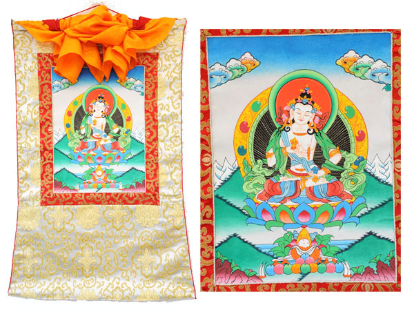Raffigura Tara bianca che possiede sette occhi che le permettono di osservare con attenzione gli esseri di tutti i reami dell'esistenza, con chiara saggezza e profonda compassione. La Sua pratica è correlata alla lunga vita e alla ricchezza. Provenienza Nepal.