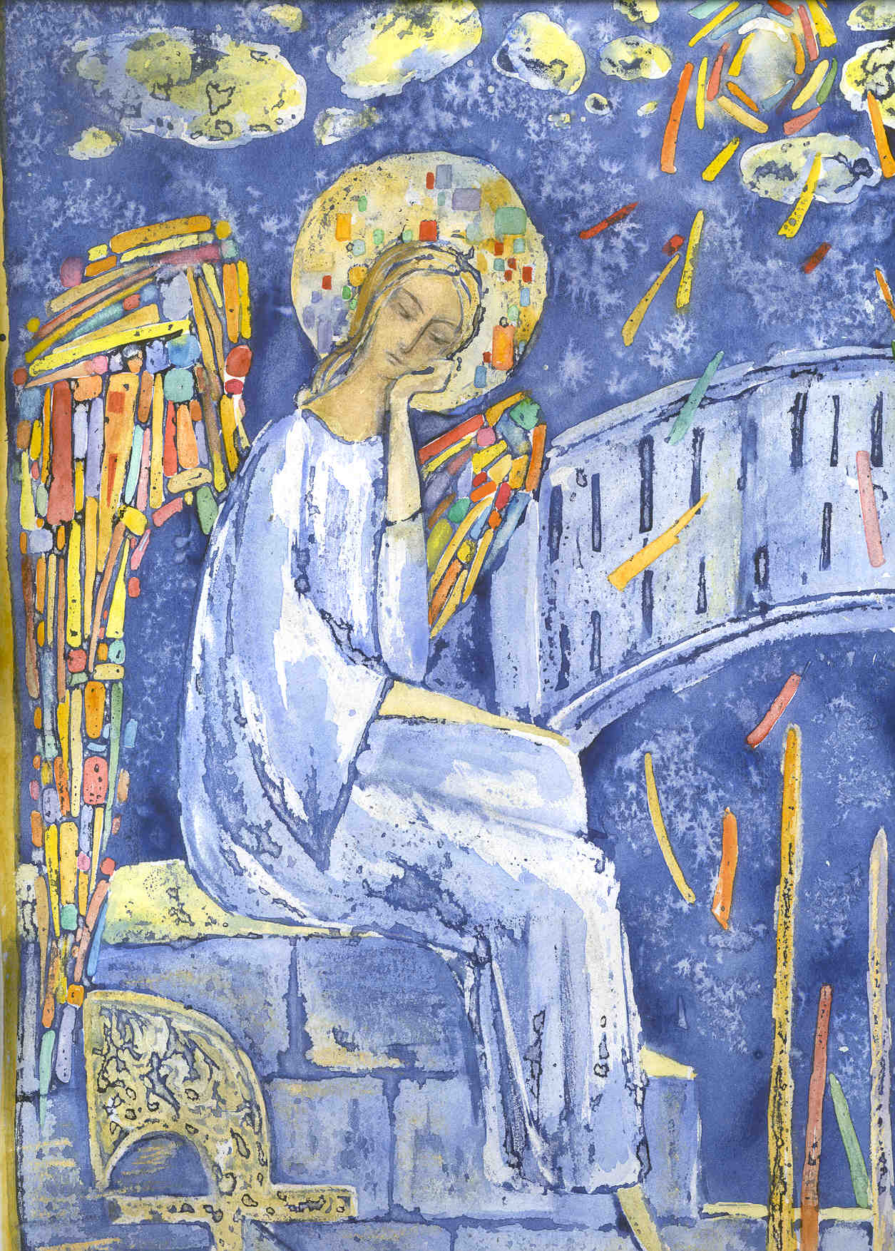 Con questo spirito abbiamo incontrato un poeta dei nostri giorni e ci siamo lasciati trascinare nel vortice della sua visione della vita oggettiva del tempo, con le sue durezze, ma mai disgiunta dal soffio della speranza che nasconde tra le pieghe dei suoi versi e che ha voluto in qualche modo far affiorare attraverso le gouaches di una giovane pittrice, Liuba Novozhilova, raffiguranti simboli presenti nel nostro sentire spirituale più intimo: gli angeli.