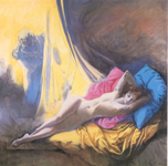 Ernani mi parlò del suo grande interesse per la Bibbia e per le figure femminili presenti nei canti. Mi venne spontaneo suggerirgli l’idea di realizzare un ciclo pittorico, con un parallelo di mie poesie, dedicato a dodici delle donne bibliche. Si mise subito al lavoro e in meno di tre anni realizzò altrettanti tele di grandi dimensioni (200x100 e 200x200).