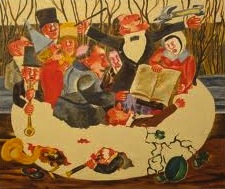 Naturale così accompagnare alle immagini dei quadri di Franz Borghese - i suoi coniugi a passeggio, generali e signore, fumatori ed oracoli, girotondi e folle, lottatori e duelli - le parole di Rino Gaetano: “onorevole eccellenza cavaliere senatore, nobildonna eminenza monsignore, vossia cherie mon amour, Nuntereggaepiù …”