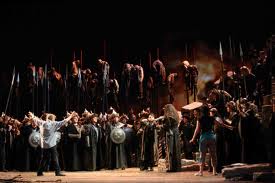 Un’analogia la si potrebbe trarre dall’Aida, altro capolavoro verdiano: anche qui la vicenda ruota intorno a due popoli avversi.