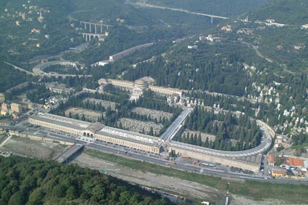 Alla struttura quadrangolare del nucleo originario si è aggiunta nel corso degli anni l’espansione verso i declivi collinari, e l’intenso sviluppo della vegetazione ha conferito all’insieme un aspetto fortemente suggestivo di fusione tra architettura e natura circostante. Il Pantheon infatti, contornato dai porticati superiori, collegati attraverso la monumentale scalinata a quelli inferiori si adagia sulla verde collina retrostante che, popolata da una sempre più fitta vegetazione ospita cappelle e monumenti disseminati e seminascosti nel verde. In quest’area si trovano la Tomba di Giuseppe Mazzini e quelle di molti protagonisti del Risorgimento.