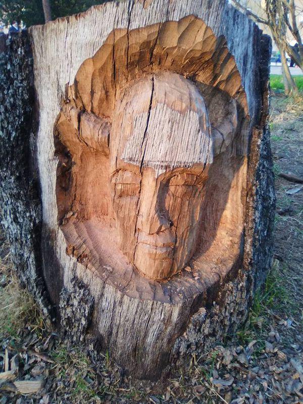Andrea Gandini, dà vita ai tronchi di alberi tagliati e abbandonati scolpendo volti della città .
