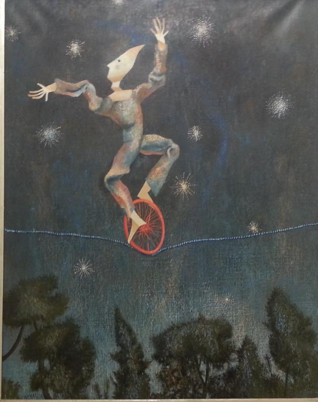 Nelle opere dedicate agli acrobati e ai giochi infantili, Benaglia rivela il bisogno di investigare anche le ambiguità e i rischi che ogni azzardo giocoso implica. Se i personaggi dei suoi primi cicli tematici risalenti a molti anni fa esprimevano un virtuoso e calcolato equilibrio, le figurine più recenti paiono sfidare sempre di più il pericolo e vengono riprese come in un fermo immagine nel preciso istante in cui l’equilibrio si potrebbe rompere. Tutti pretesti per raccontare la gioia di vivere, ebbrezza allo stato puro, insidiata dall’istinto di morte. Tappe dello stesso itinerario inconsapevole tra bellezza e paura, simbolo quindi della condizione umana.