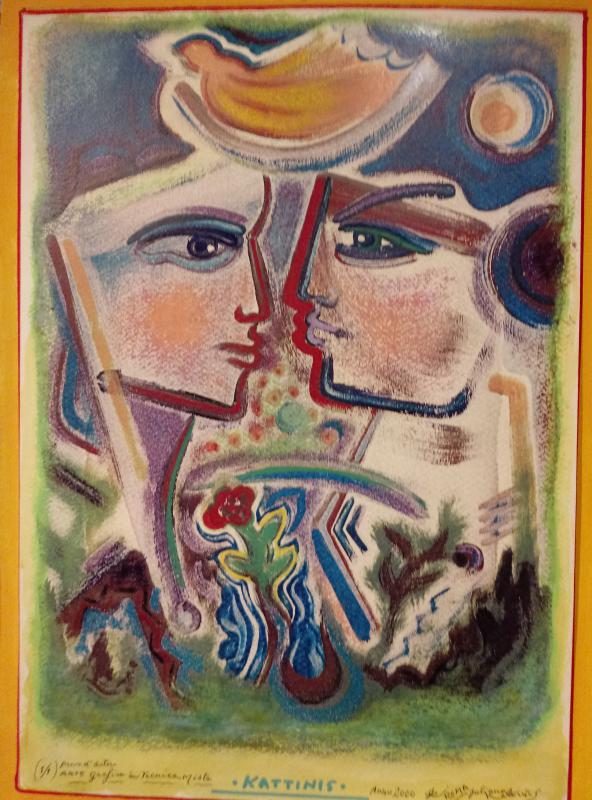 I graffiti primitivi, l’arte assira, egiziana, etrusca, greca, africana, e ancora Michelangelo, oggetto della sua tesi all’Accademia di Belle Arti, l’Impressionismo, l’Espressionismo, la Metafisica, il Surrealismo, de Chirico, Chagall, Picasso, Kandisnky, Mirò, Klee, ma anche Campigli, Mastroianni, tutta l’arte, dalle origini al Novecento, riaffiora nelle opere di Kattinis, sedimentata, “vissuta” in composizioni sempre diverse per una ricerca in continuo divenire.