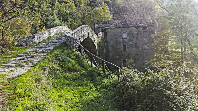 Da Gamberaldi a Marradi, 9 km impegnativi fino a oltrepassare Poggio Cà del Falco, e Cà del Vento, e poi scendere fino ad arrivare a Marradi, dall’Arco della Volpe all’agriturismo la Colombaia: riposo!