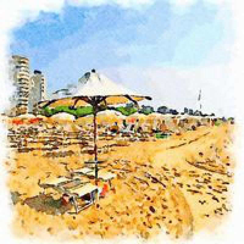 Ogni tanto, lungo la strada che costeggia il mare, in una serie ininterrotta di gruppi di case, di muri invalicabili, c’è una spiaggia, con famiglie, e l’eterno sorriso della giovinezza trionfante. [...]