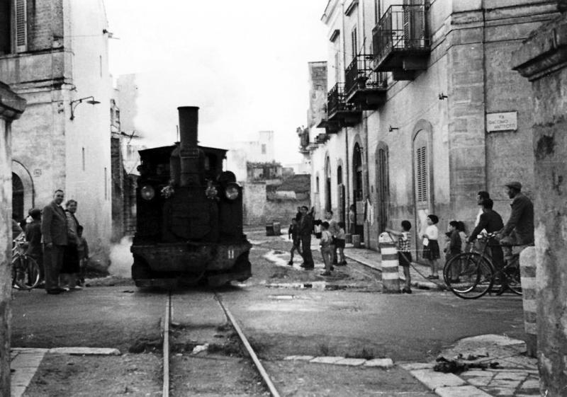 Una sensazione, del resto, che abbiamo grazie anche a qualche cartolina, in cui si vede la locomotiva a vapore, la St. Leonard fabbricata a Liegi, in Belgio, nota a tutti come “la ciuf ciuf” che giunge da Terlizzi, su per l’attuale via Ammiraglio Vacca, raccordandosi con il tratto curvo di via Vasari, passando tra i fronti stretti costruiti prima dell’arrivo nella stazione.